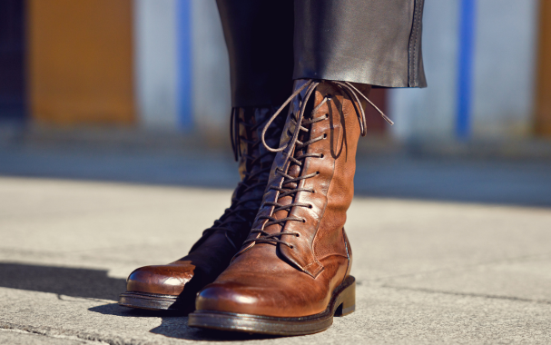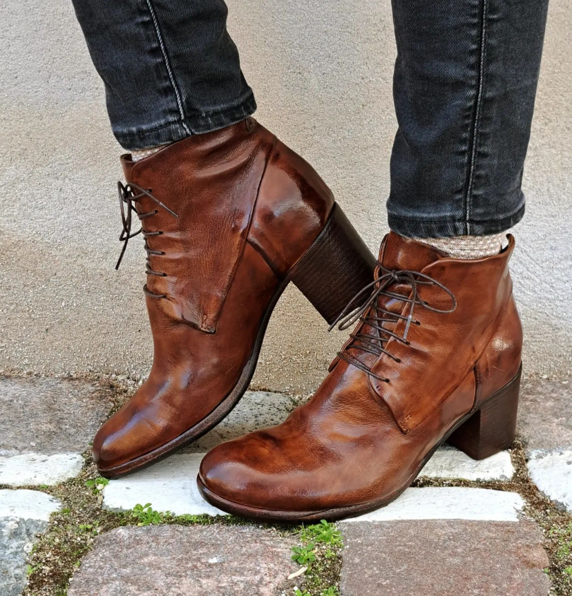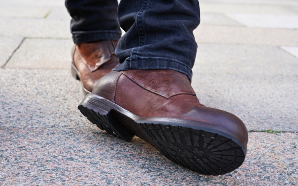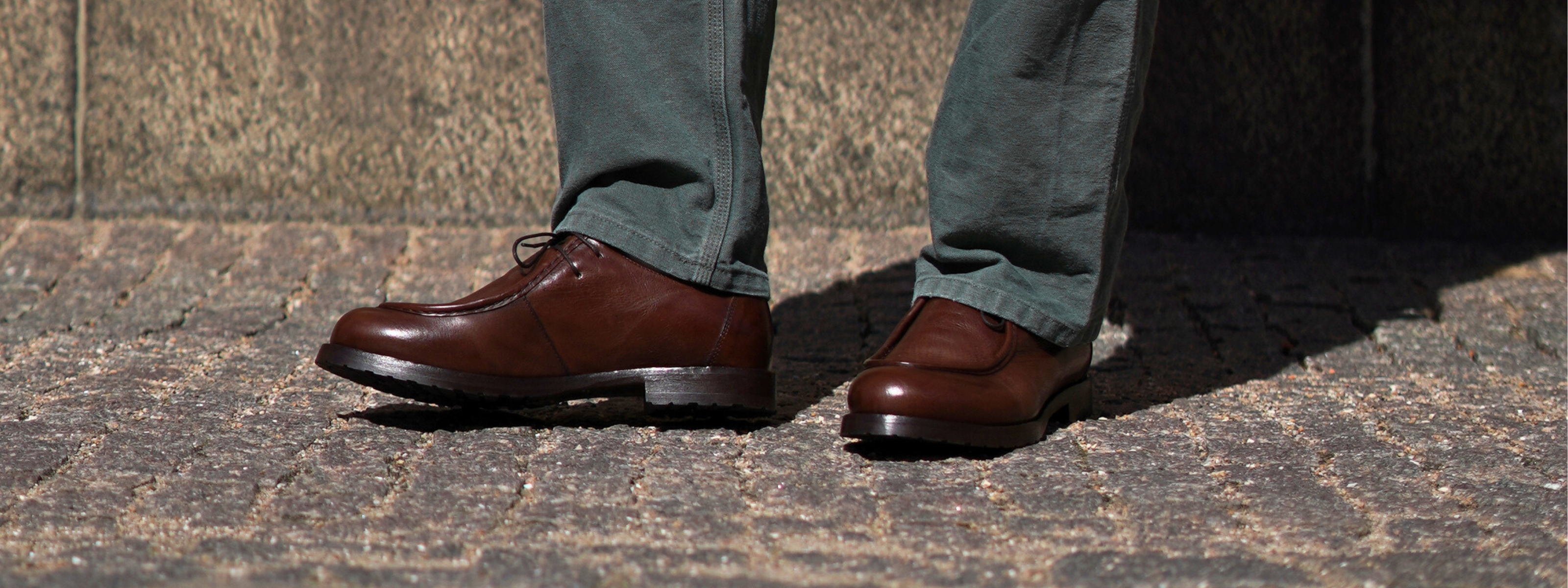 Vores sko og støvler gennemgår en stenvask, som vist i videoen. Denne proces blødgør læderet og fremhæver dets unikke, autentiske karakter.