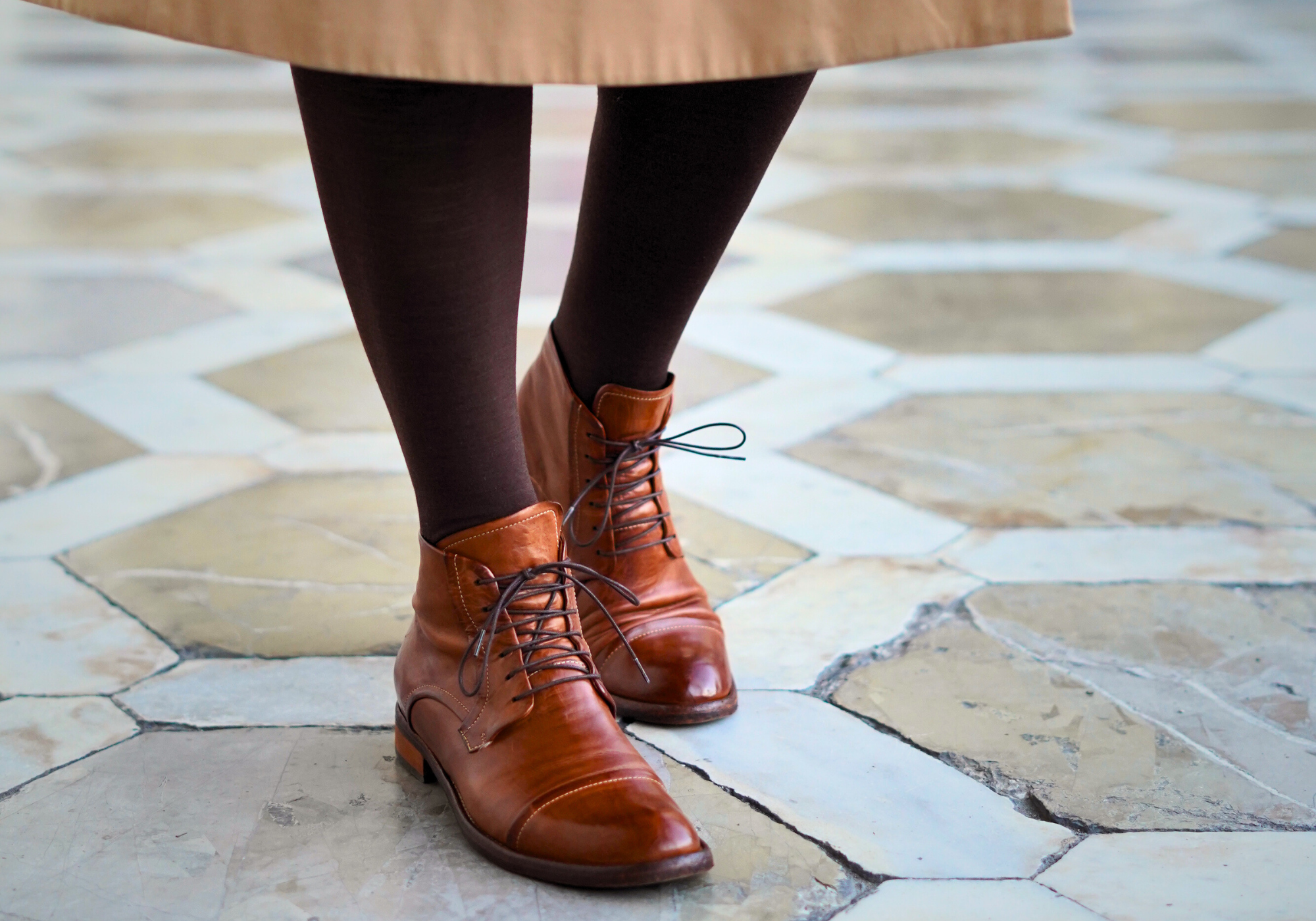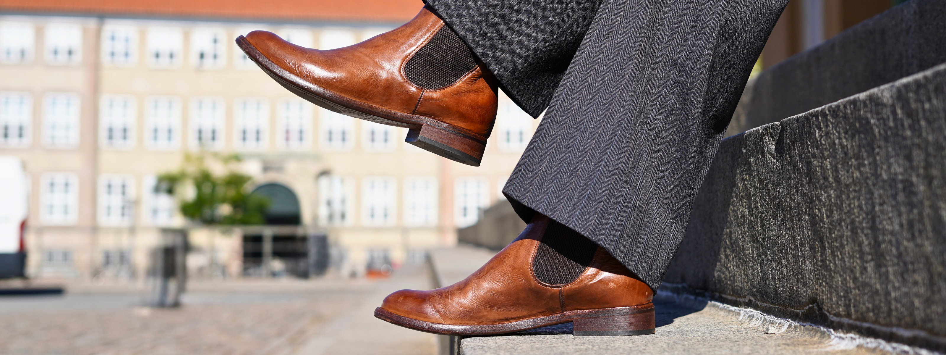 Vores sko og støvler gennemgår en stenvask, som vist i videoen. Denne proces blødgør læderet og fremhæver dets unikke, autentiske karakter.